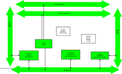 I chose this design on the basis that I should concentrate on a single use case at first. I also wanted to make maximum use of the equipment I already have installed (all the items in green are already installed and only the items in white remain to be ordered). I also have a number of redundant communication paths because this is advised in the Insteon whitepaper.